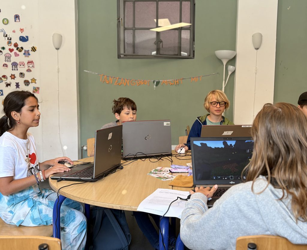 Im viertägigen Sommerferien-Workshop „Deine Zukunftsstadt mit Minecraft“ hatten 12 junge Teilnehmer*innen die Gelegenheit, ihre eigenen Visionen einer Stadt in der Zukunft zu erschaffen – mit allem, was ihnen wichtig ist. Es wurde nicht nur gebaut, sondern auch über Nachhaltigkeit und das Leben in der Zukunft nachgedacht.